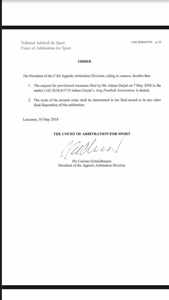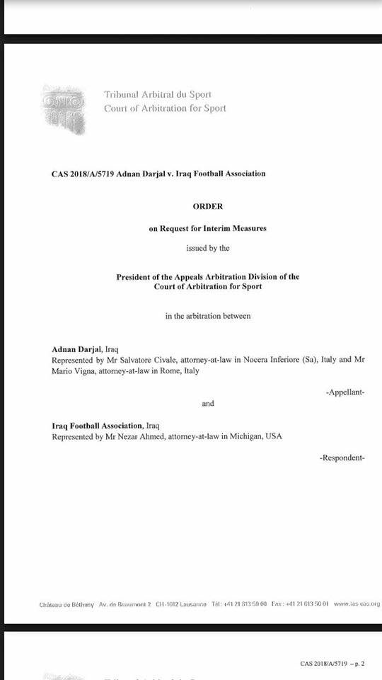ومحكمة كاس، بعد قرار استبعاده من الترشيح لانتخابات اتحاد الكرة العراقي.