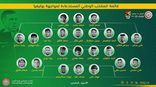 اعلن مدرب المنتخب الوطني كاتانيتش، عن قائمة اللاعبين الرسمية لمواجهة بوليفيا الودية المقرر اقامتها خلال شهر تشرين الثاني الجاري.
