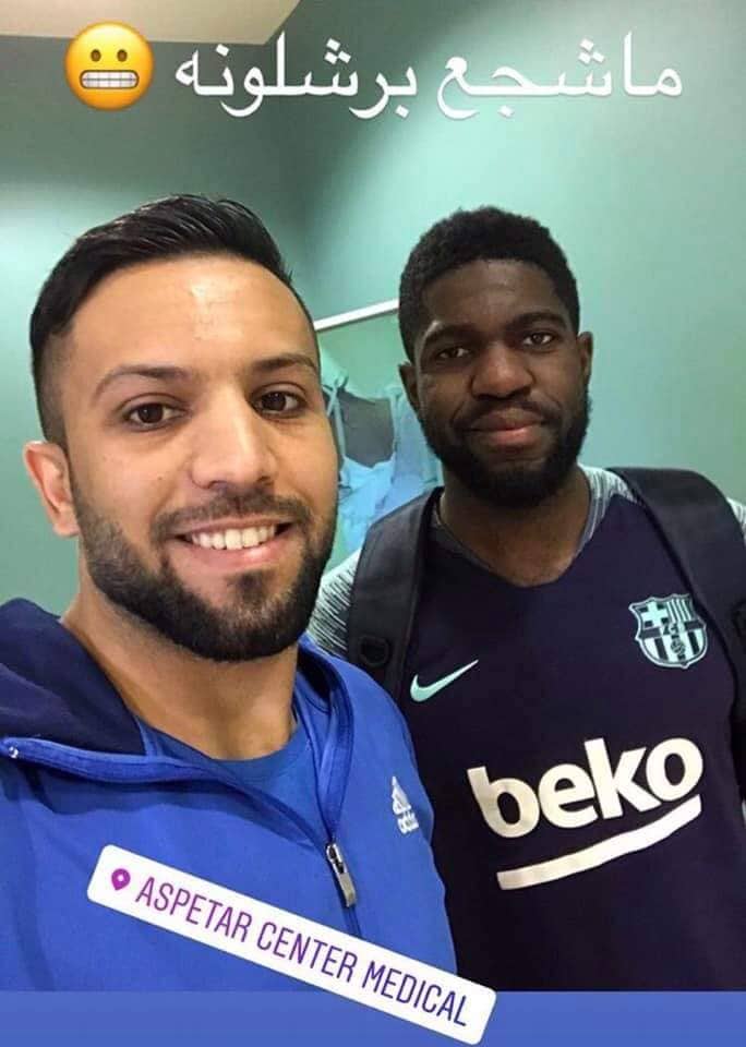 ونشر ناظم عبر حسابه على موقع "انستغرام" صورة تجمعه بالمدافع الفرنسي في مركز "سبيتار" الطبي بأكاديمية اسباير في قطر، وعلق عليها مازحاً: "لا أشجع برشلونة".