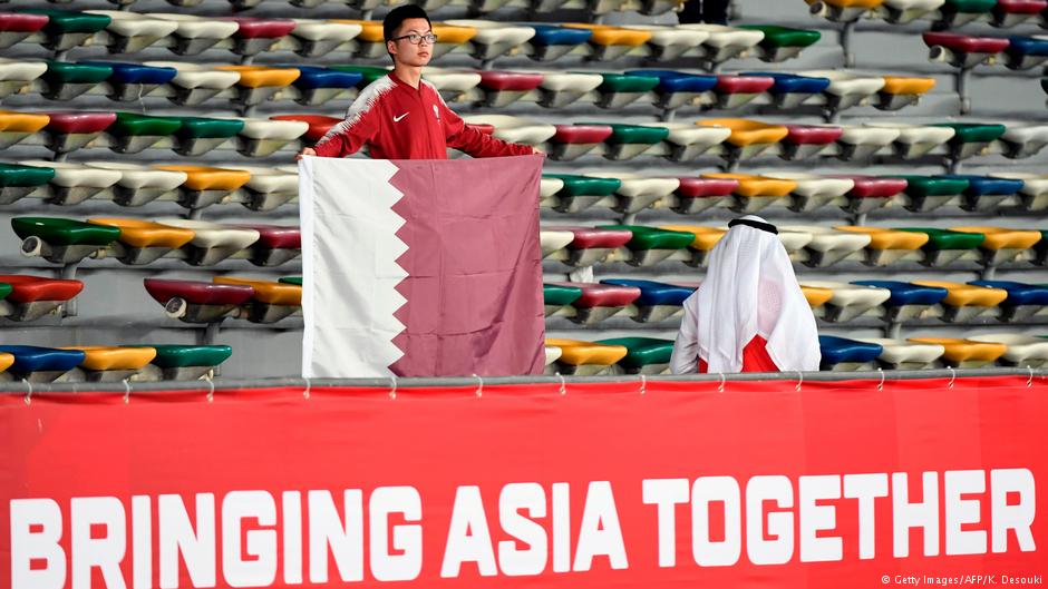صورة لشاب شرق آسيوي يشجع قطر "وحيدا" على مدرجات ملعب مواجهتها ضد السعودية في الدور الأول
