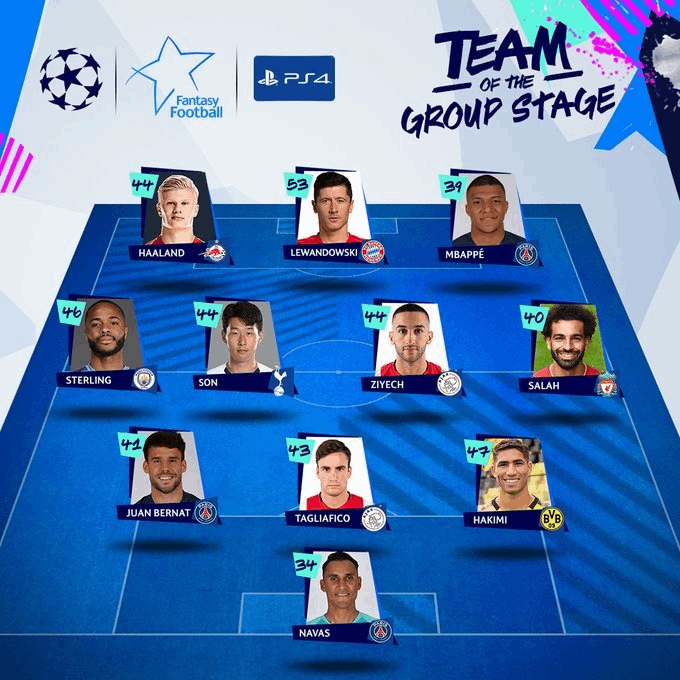 وشهد التشكيل الذي أعلن من قبل يويفا، وفقًا لأرقام اللاعبين في اللعبة الافتراضية "فانتازي"، وجود محمد صلاح مهاجم ليفربول ومنتخب مصر برصيد 40 نقطة حققها في 6 مباريات.