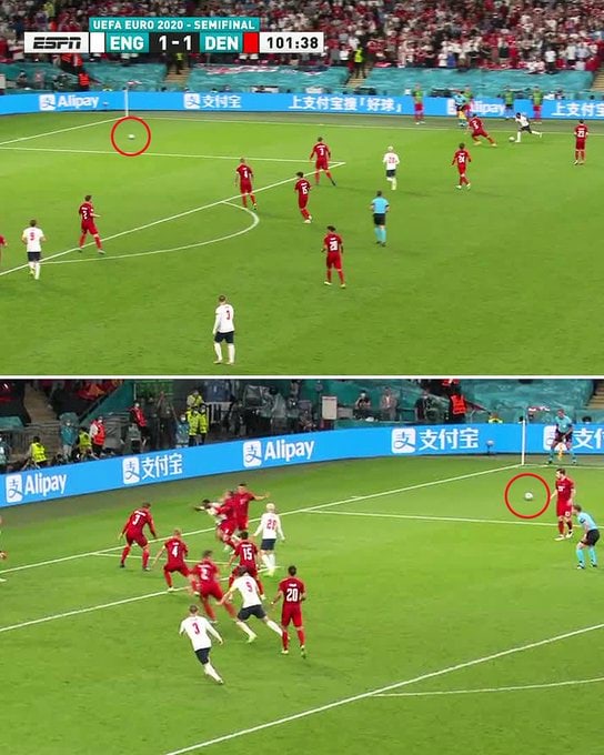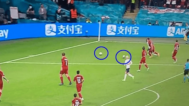 الجدل جاء بسبب وجود كرتين داخل الملعب أثناء لعبة ضربة الجزاء، كما أن عرقلة مدافع الدنمارك لرحيم ستيرلينع لم تكن واضحة.