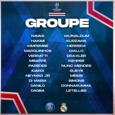 وجاءت قائمة سان جيرمان لمواجهة الريال كالتالي: