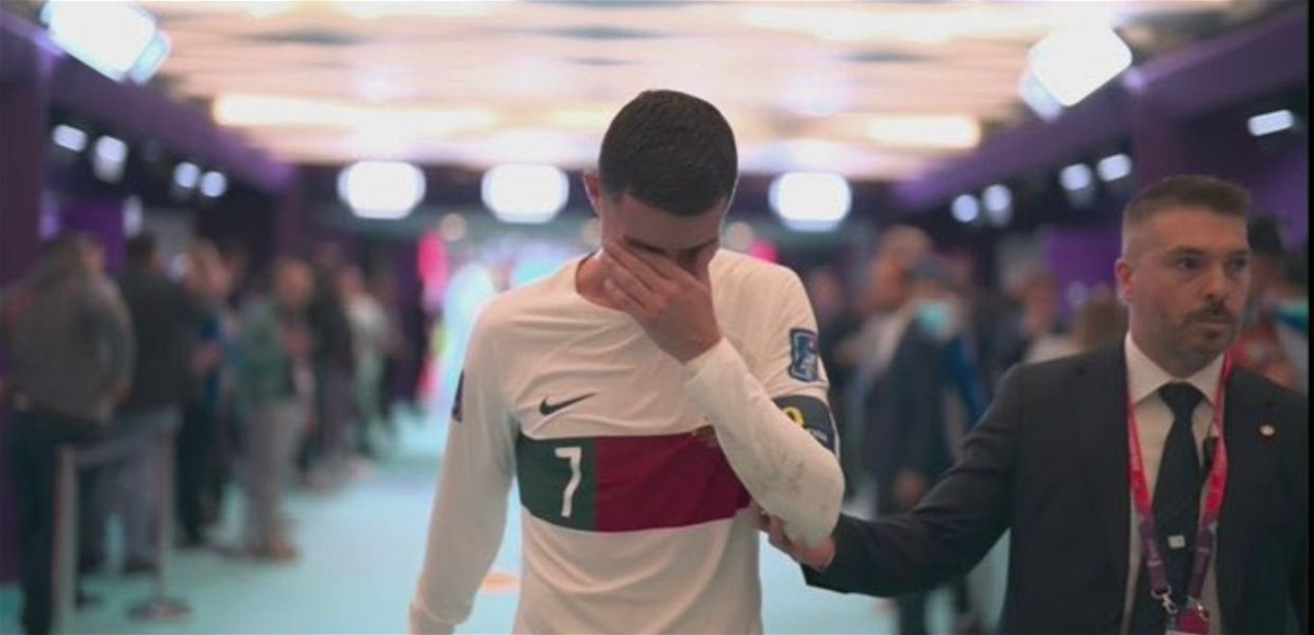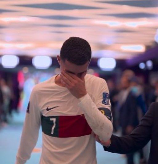رونالدو وهو يخرج من الملعب باكياً، إذ لم يتمالك نفسه حتى بعد دخوله النفق المؤدي لغرف الملابس.