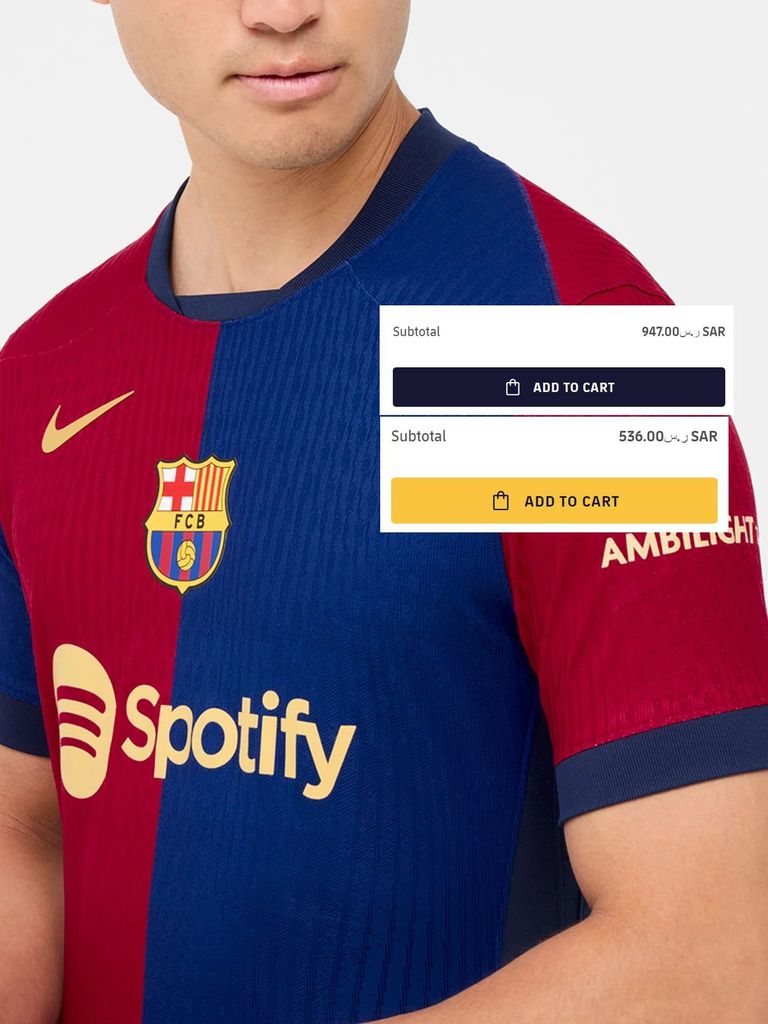 وتبيّن أن سعر القميص بدون إضافات يصل قرابة 160 دولار أمريكي، بينما القميص الذي يحتوي على إضافات من شعارات والراعي الرسمي يصل إلى 272 دولار أمريكي.