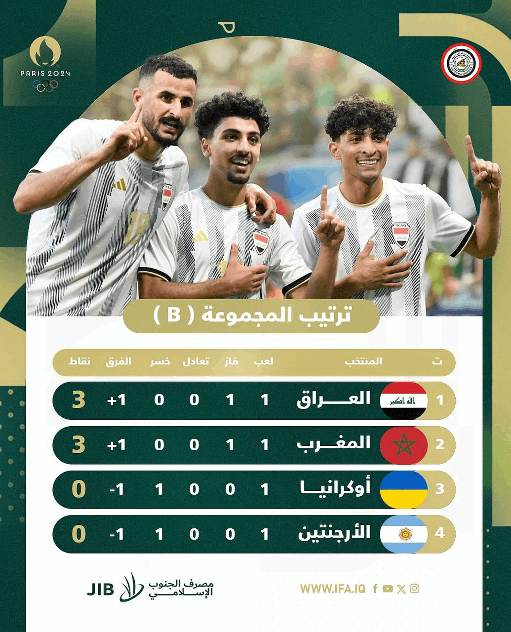 بهذا الفوز، اقتسم المنتخب الأولمبي العراقي صدارة المجموعة الثانية في الأولمبياد مع المنتخب المغربي برصيد 3 نقاط لكل منهما. ونستعرض أبرز 3 مشاهد من انتصار العراق في المباراة الأولى بأولمبياد باريس: