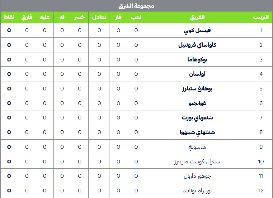ترتيب دوري أبطال آسيا للنخبة 2024-2025