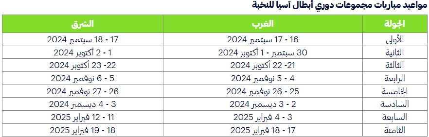 جدول مباريات دوري أبطال آسيا للنخبة 2024-2025