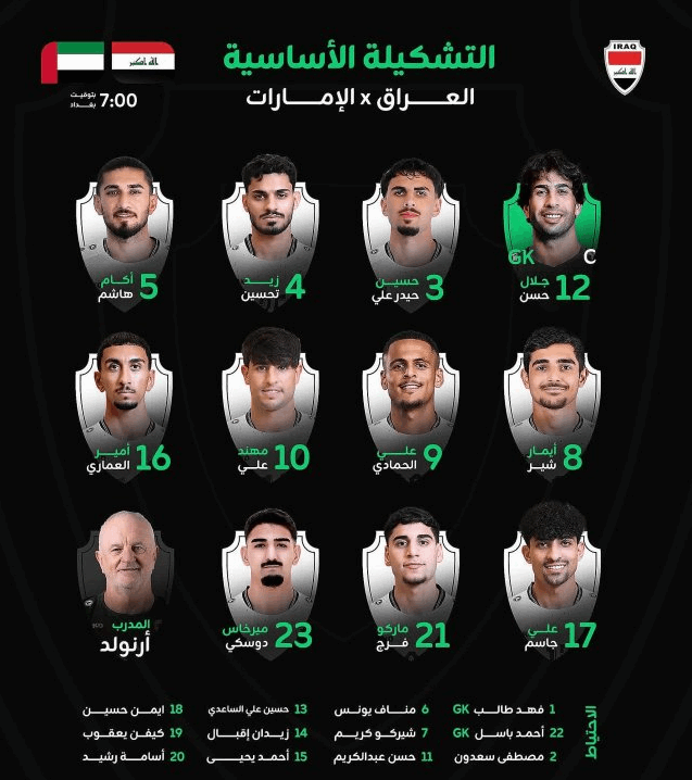 التشكيلة المتوقعة لمنتخب العراق في مواجهة الإمارات