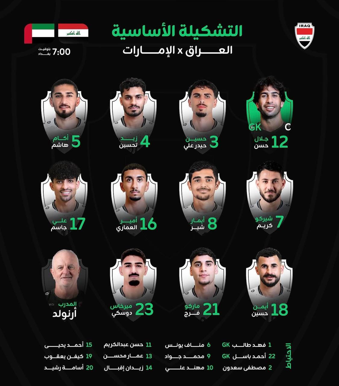 تشكيلة المنتخب الإماراتي لمواجهة العراق