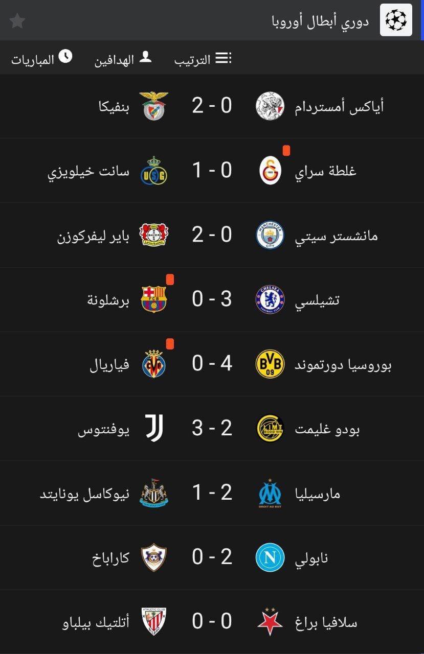 اليك نتائج دوري ابطال أوروبا الامس