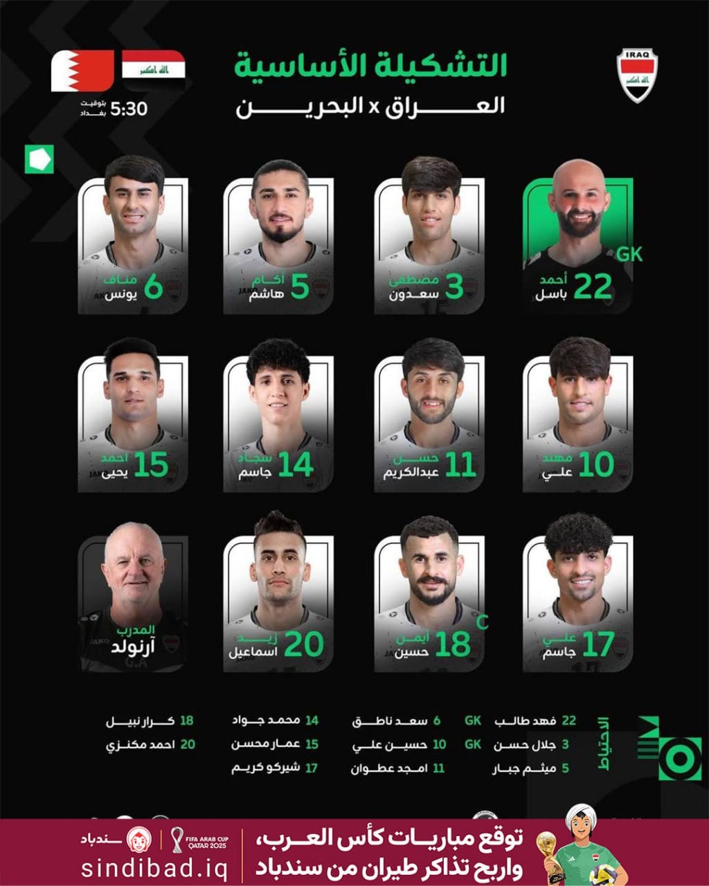 إليكم القنوات الناقلة لمباراة العراق والبحرين في كأس العرب