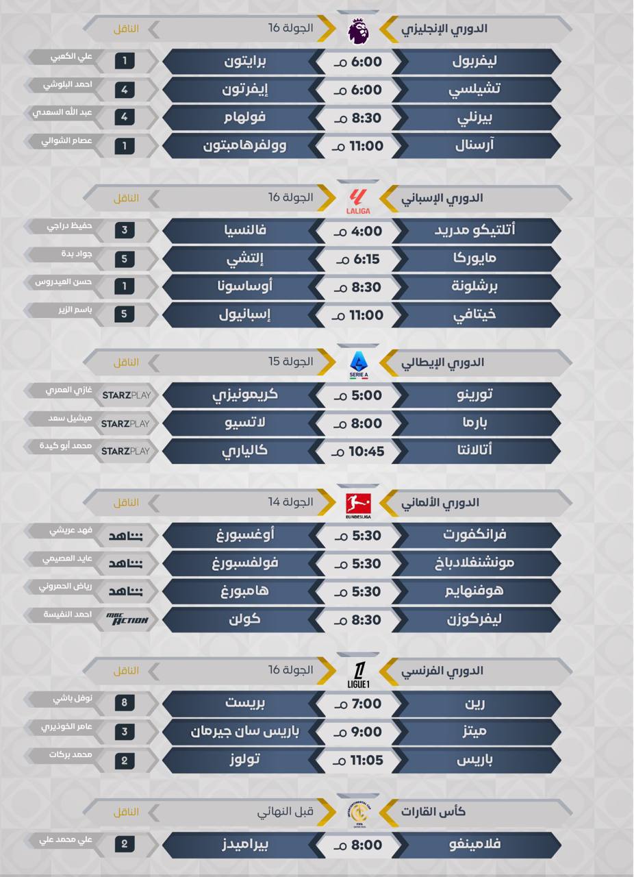 ودناه جدول أبرز مواعيد وأوقات مباريات اليوم في الدوريات الأوروبية والعالمية ضمن الدوريات الخمس الكبرى.
