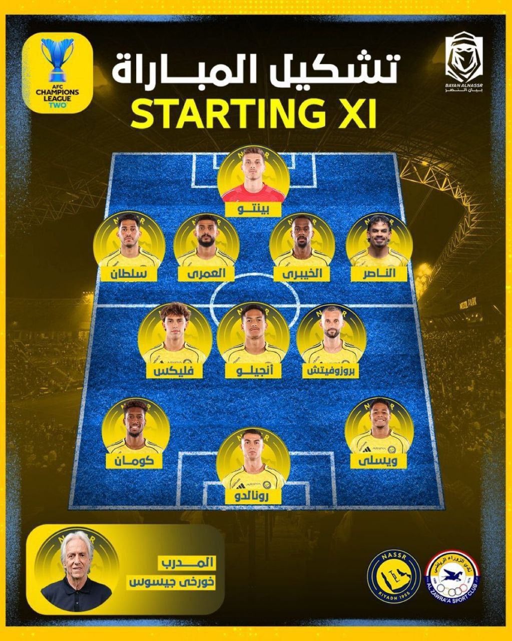 تشكيلة فريق الزوراء في مواجهة النصر السعودي