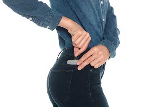 ثم قومي بوضع هاتفك المحمول بالجيب المخصص له
