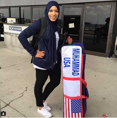 ابتهاج محمد ذات الأصول الإفريقية، أول رياضية أميركية مسلمة محجبة تشارك في فعاليات دورة الألعاب الأولمبية المقررة في مدينة ريو دي جانيرو بالبرازيل، صيف العام المقبل.