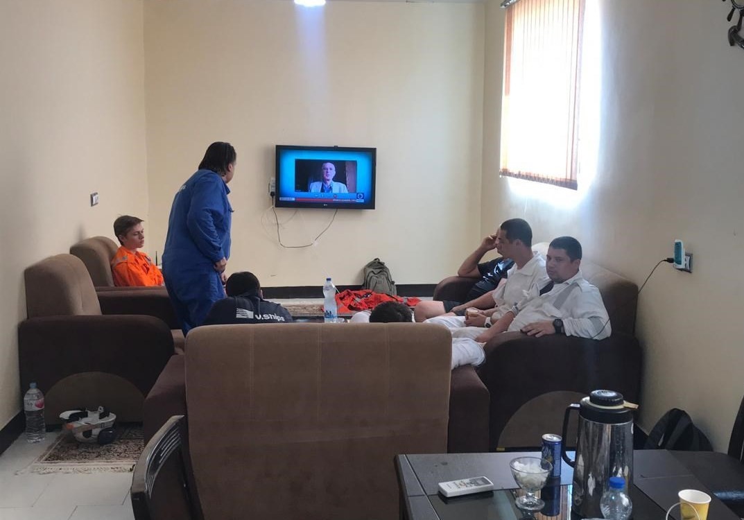 نشرت وكالة "تسنيم" الإيرانية شبه الرسمية، صورا لأفراد طاقم ناقلة النفط "فرونت التير" بعد إنقاذهم في