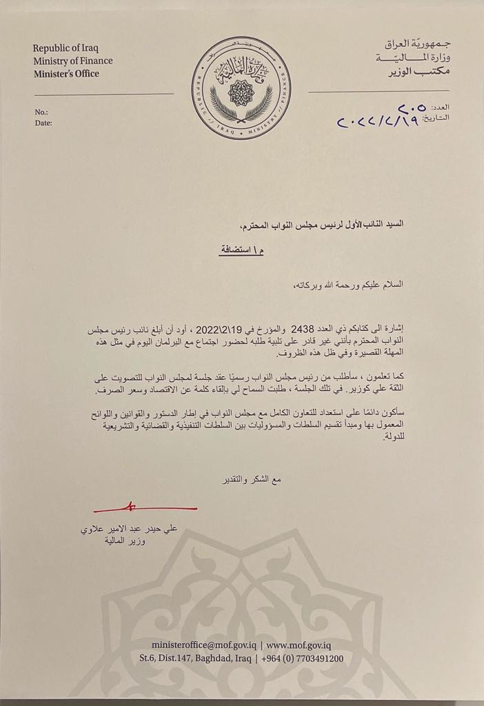 بالوثيقة.. وزير المالية يخاطب البرلمان: مستعد للتعاون في إطار الدستور