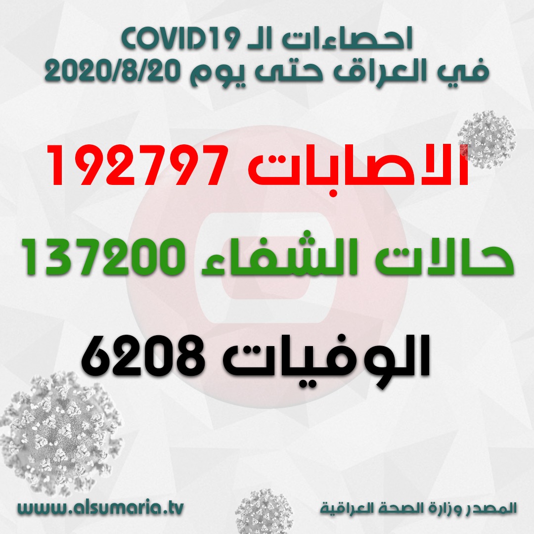 لهذا اليوم وبذلك يكون المجموع الكلي للنماذج المفحوصة منذ بداية تسجيل المرض في العراق 1368727".