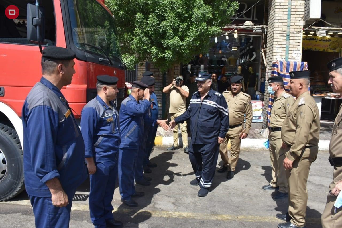 الدفاع المدني يكافح حريقاً داخل محلات في سوق شرقي بغداد