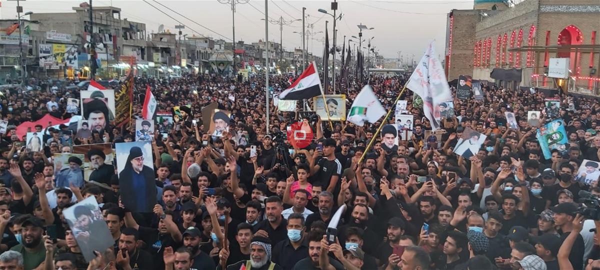 بالصور.. أنصار الصدر يتجمهورن شرقي بغداد تأييداً لمشاركة التيار في الانتخابات