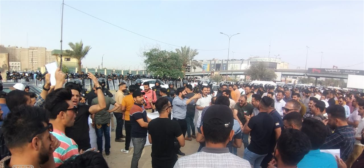 مئات الخريجين يتظاهرون أمام مبنى وزارة النفط في بغداد (صور)