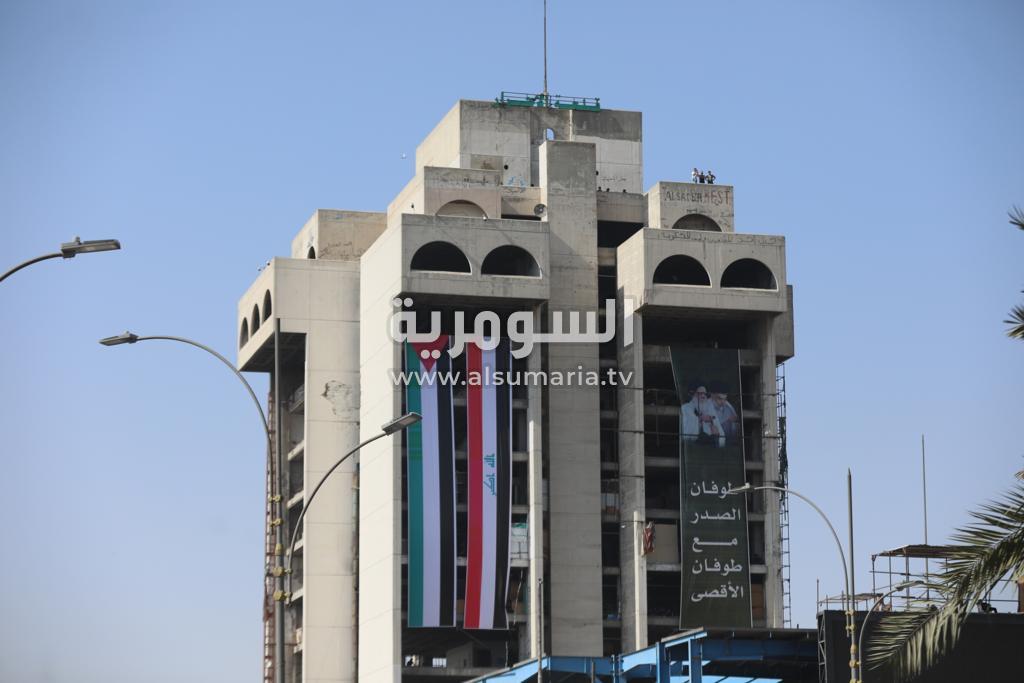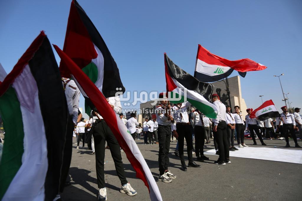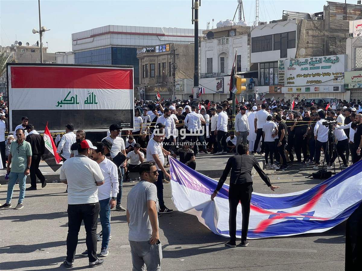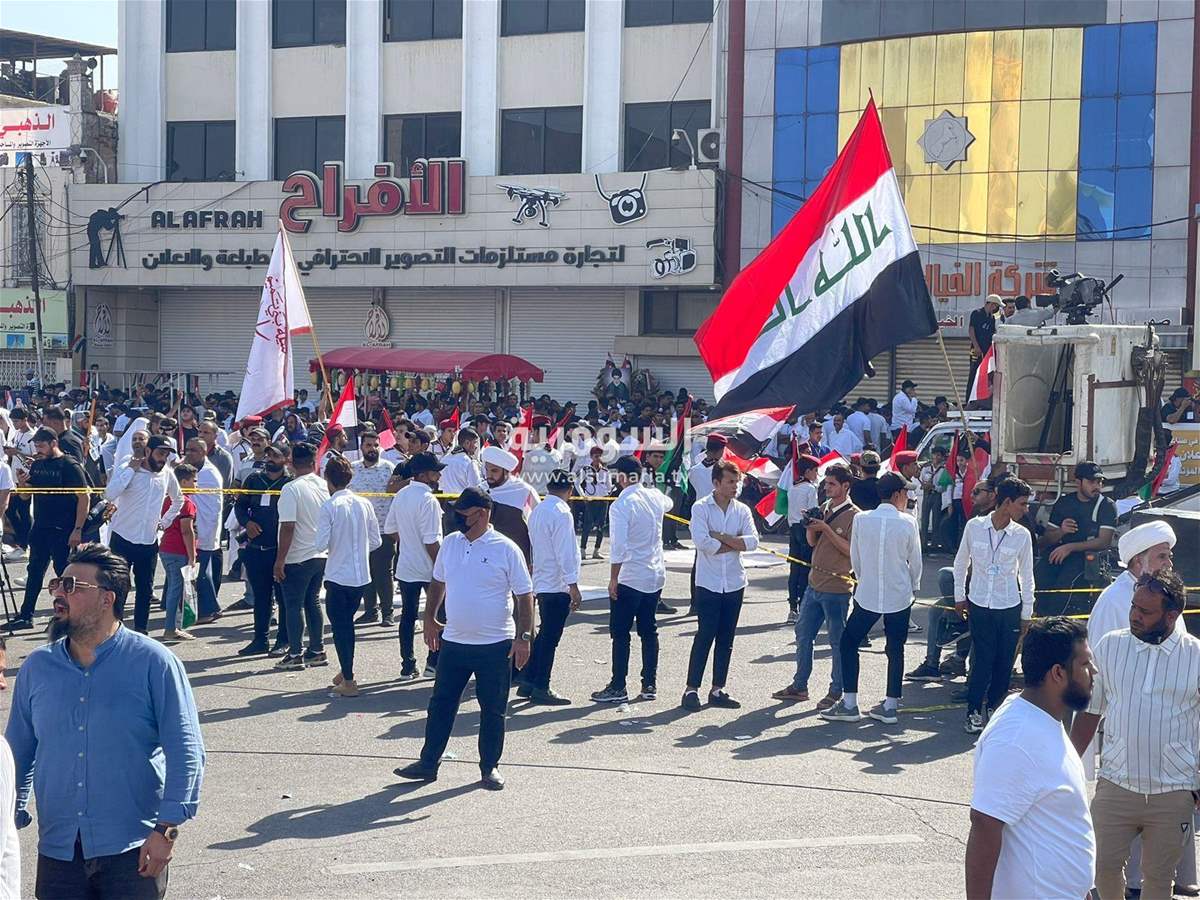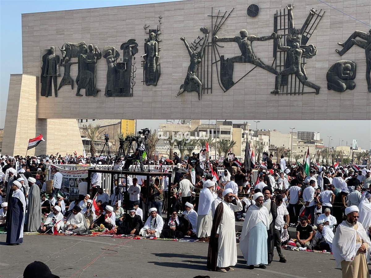 وقال مراسل السومرية نيوز، إن "المئات من الجماهير بدأت بالتوافد إلى ساحة التحرير وسط بغداد لإقامة الصلاة الموحدة واستعدادا للتظاهرة المليونية التي دعا لها زعيم التيار الصدري مقتدى الصدر، لنصرة لفلسطين".