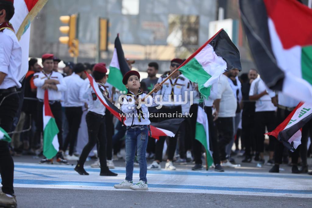 وكان زعيم التيار الصدري مقتدى الصدر قد دعا يوم الاثنين، إلى الخروج بتظاهرة مليونية وسط بغداد لمساندة الشعب الفلسطيني ضد إسرائيل، فيما قال صالح محمد العراقي المعروف بوزير الصدر، نقلا عن الأخير، "أيها المتظاهرون الزاحفون الى بغداد الحبيبة.. لتكن الأكفان زيّكم الموحّد لكي ترعبوا الأعداء".