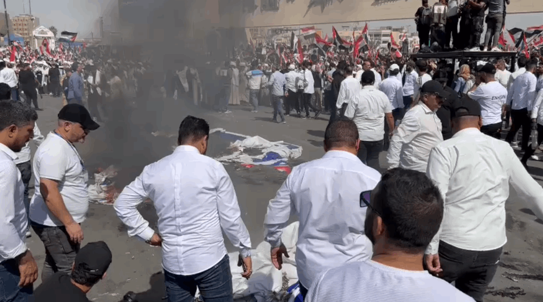 السومرية توثق لحظة احراق العلم الإسرائيلي في ساحة التحرير