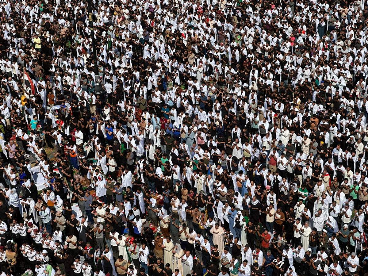 من الاعلى، تزامناً مع تظاهرة مليونية لمساندة الشعب الفلسطيني ضد "إسرائيل".