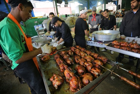 الدجاج المشوي، أحد الوجبات المتنوعة التي يقدمها الموكب.