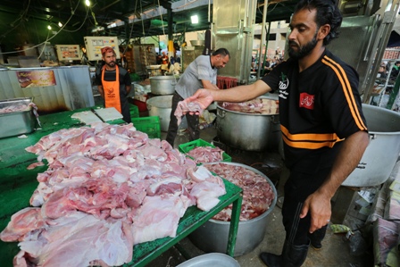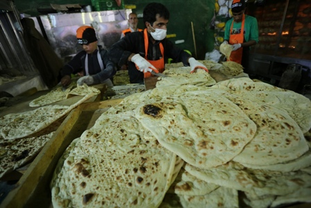 الخبز يوزع ساخنا مع وجبات الموكب.