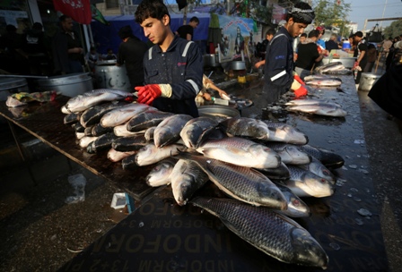 الأسماك الطازجة تقدم مشوية للزائرين.