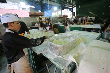 المسنين الى جانب الشباب يعدون الخبز للزائرين بمهارة عالية.