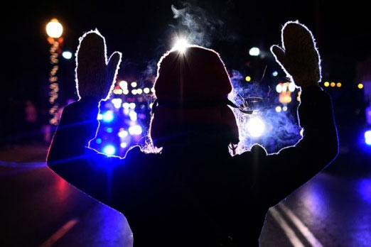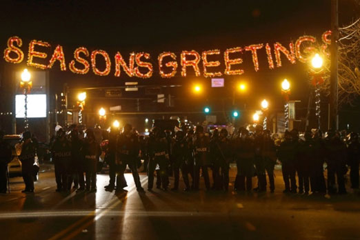 17. صورة من ولاية مزوري الاميركية حيث تقطع الشرطة الطريق في تظاهرة احتجاحية على مقتل الشاب الاميركي