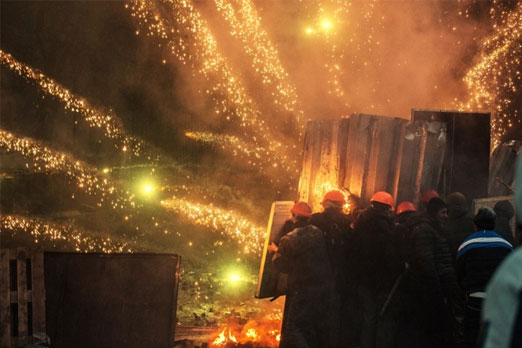 15. الصورة التقطت في 20 شباط خلال الاشتباكات العنيفة التي دارت بين متظاهرين اوروبيين والشرطة الأوكرانية