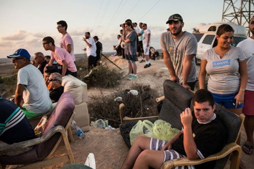 20. صورة لصحافيين في سديروت يتجمعون لمشاهدة سقوط الغارات الاسرائيلية على قطاع غزة