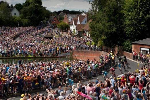 بريطانيا حيث تنظم مسابقة لرياضة الدراجة الهوائية ويحتشد الناس لمشاهدة الحدث