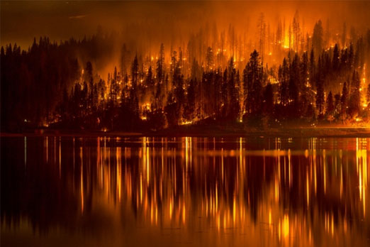 كاليفورنيا تظهر لون الحريق البرتقالي الذي ينعكس على المياه الهادئة