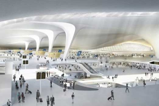 وتحديدا في بكين، التي تستعد لإنشاء أكبر مطار في العالم يتسع لـ 45 مليون مسافر سنويا ممهورا بتصميم المهندسة العراقية العالمية