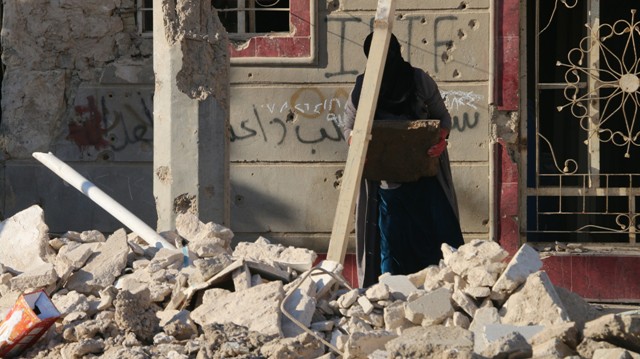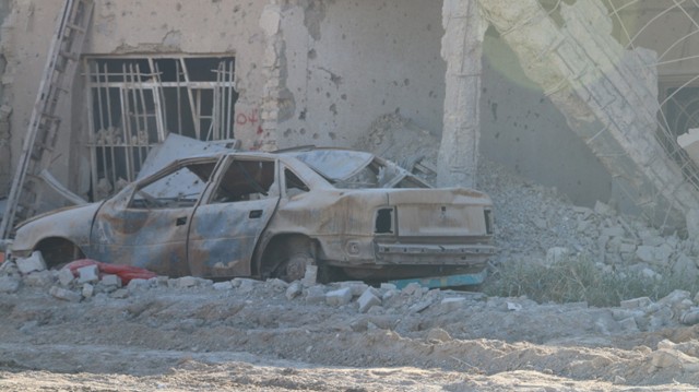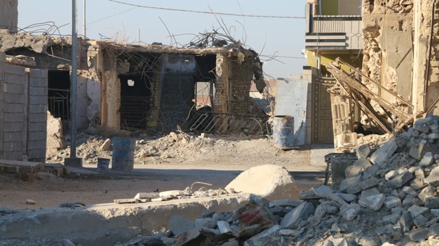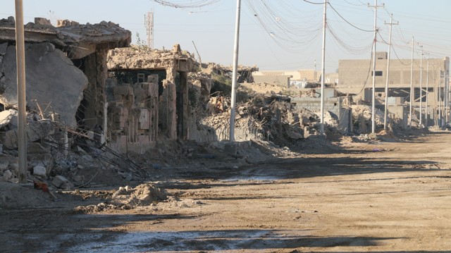 في المدينة، شاهدا على الدمار والخراب الذي خلفه التنظيم.