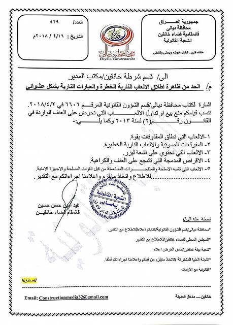 بالوثيقة.. قضاء خانقين في ديالى يصدر قائمة بالبضائع الممنوعة من التداول