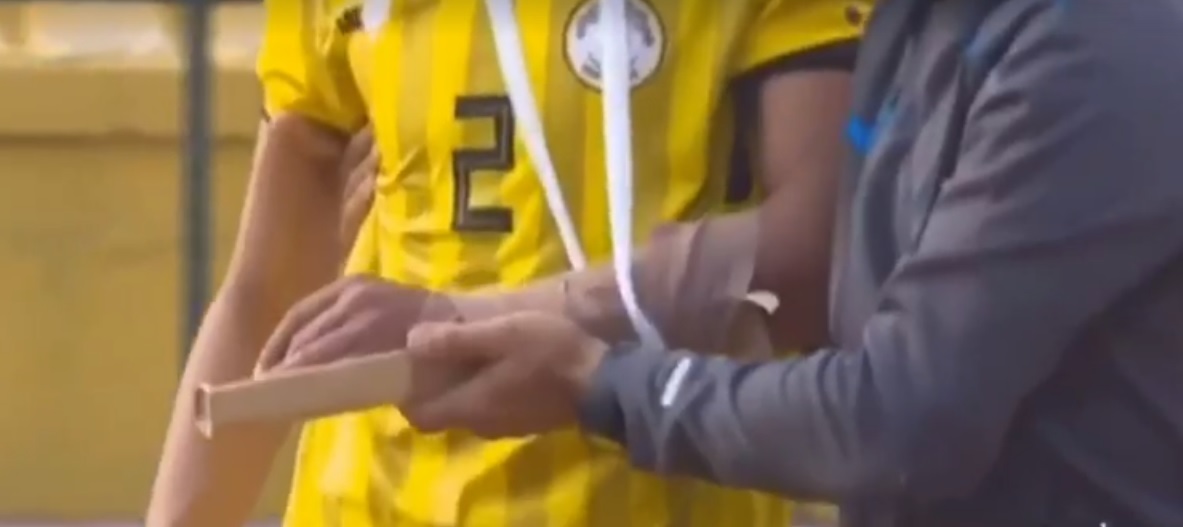 في الدوري العراقي.. معالج طبي يستعين بـ"ساق كرسي" لمعالجة لاعب مصاب