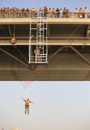 14 رمضان في بغداد، ضمن التدريبات على القفز من الاعلى، حيث كانت القفزة ملغاة منذ عام 2003 بسبب الاوضاع التي شهدتها البلاد.