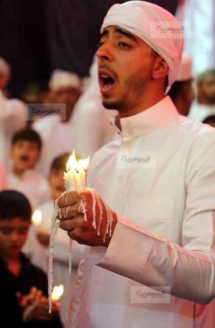 وأجهش المئات ببكاء مر حزنا على أهل البيت وتقديرا لمواقفهم البطولية، فيما حمل آخرون شموعا موقدة، بينما سال الشمع المنهمر على أيديهم دون أن يأبهوا لشدة حرارته.