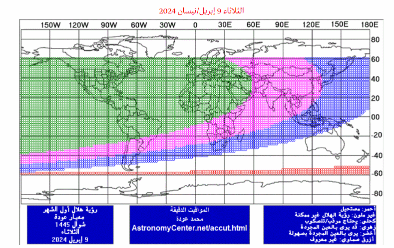والإسلامية بالكامل، حلول أول أيام العيد في موعد موحد بجميع الدول، حيث سيوافق الـ10 من شهر نيسان المقبل، والموافق يوم اربعاء، لكن منطقة "صغيرة ووحيدة" تقع في الجزء الازرق من الخارطة واقصى غرب الكوكب، سيكون عيدها الثلاثاء.
