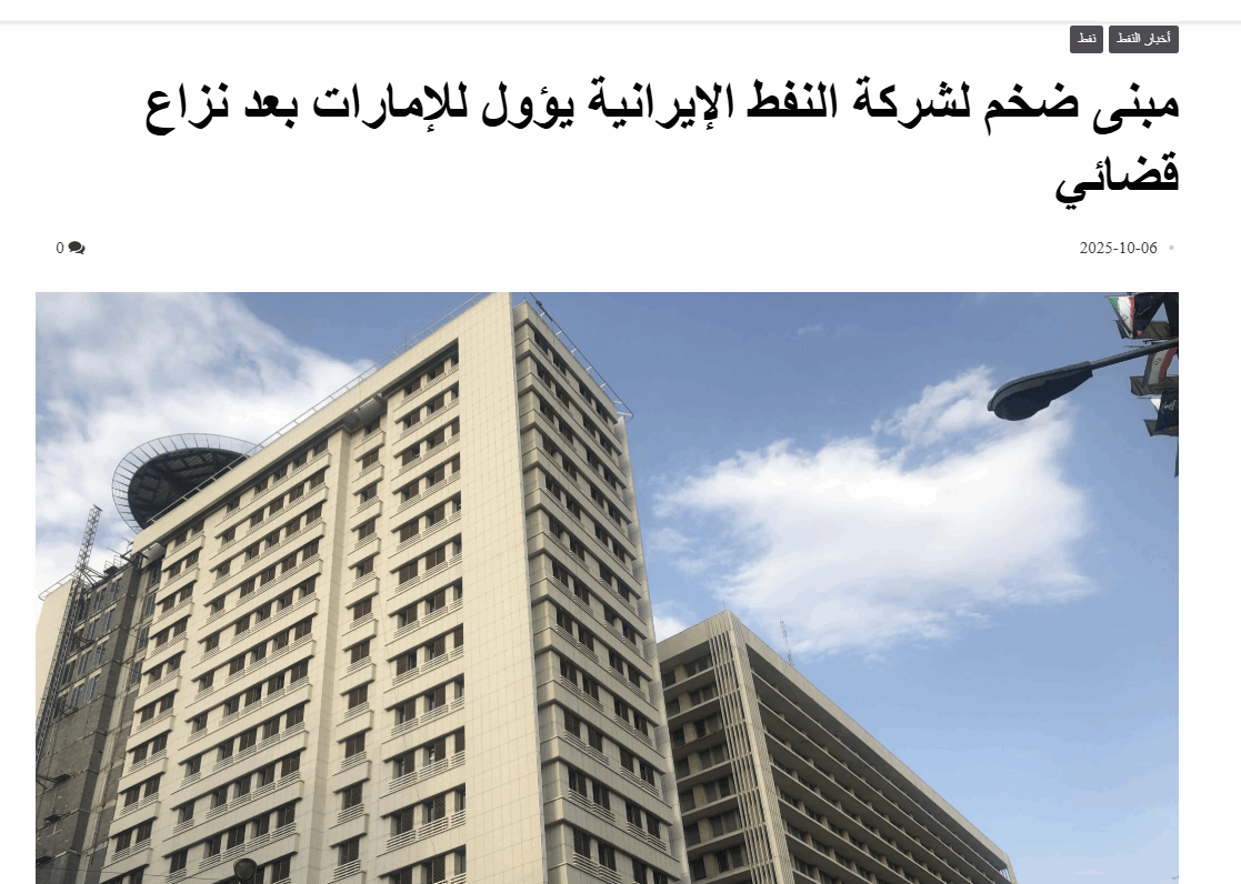 الايرانية، وتمكنت من الاستحواذ على مبنى لشركة النفط الايرانية في قضية النزاع على عقد غازي، حيث حكمت
