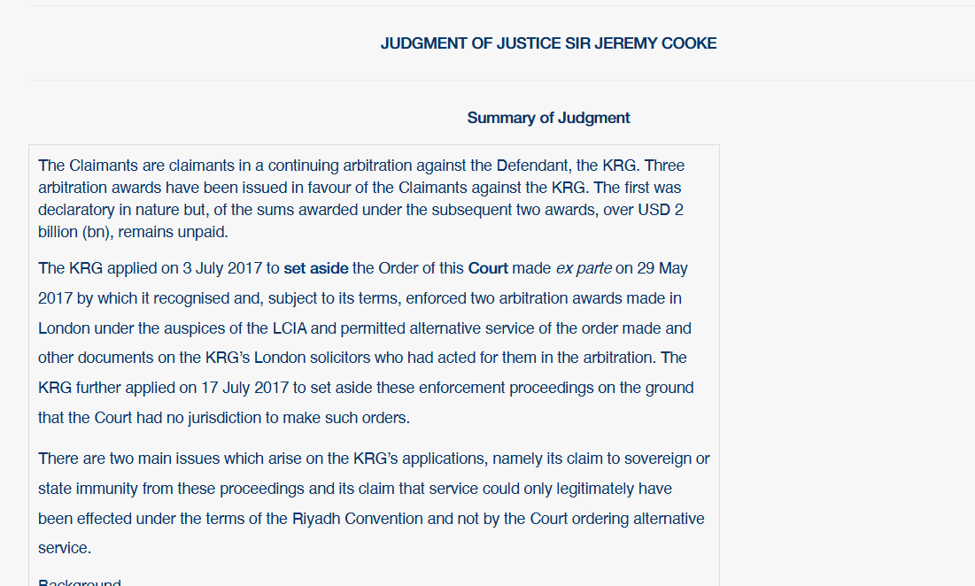 وسط ذلك، يقف العراق على اعتاب ورطة محتملة، مع شركة لها سوابق كبيرة في كسب الدعاوى القضائية ضد الدول، ومع تأخر تنفيذ موعد عقد هذه الشركة يقرع جرس الانذار ويذكر بمصير الدعاوى القضائية التي كسبت فيها هذه الشركة اموالا طائلة بل وصلت الى حد الاستحواذ على مقر