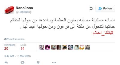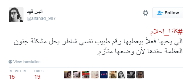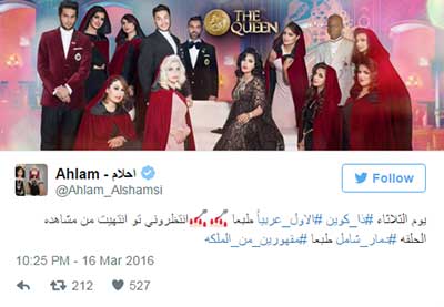 الى ذلك، سخر بعض المغردين من أداء الفنانة أحلام في البرنامج، وأشاروا الى أنها مصابة بجنون العظمة. ومن بين هذه التغرديات نذكر: