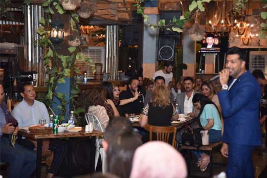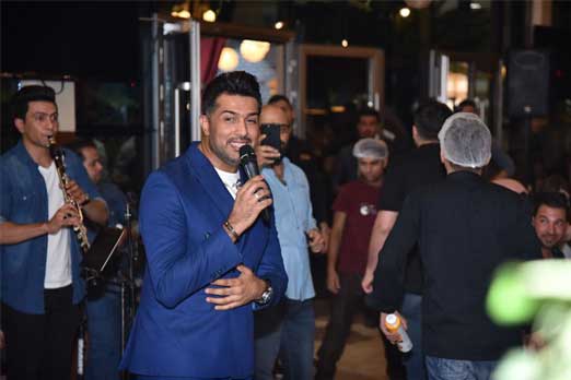 وتحديدا في في مطعم الجنائن المعلقه حيث أدى باقة من أغانيه الخاصة مثل "قلبي وقلبك" ، "حبك تاج"، "على راسي"، "انت الغالي" ، "ما قلت للناس احبك" وغيرها من الاغاني التراثية والعراقية.